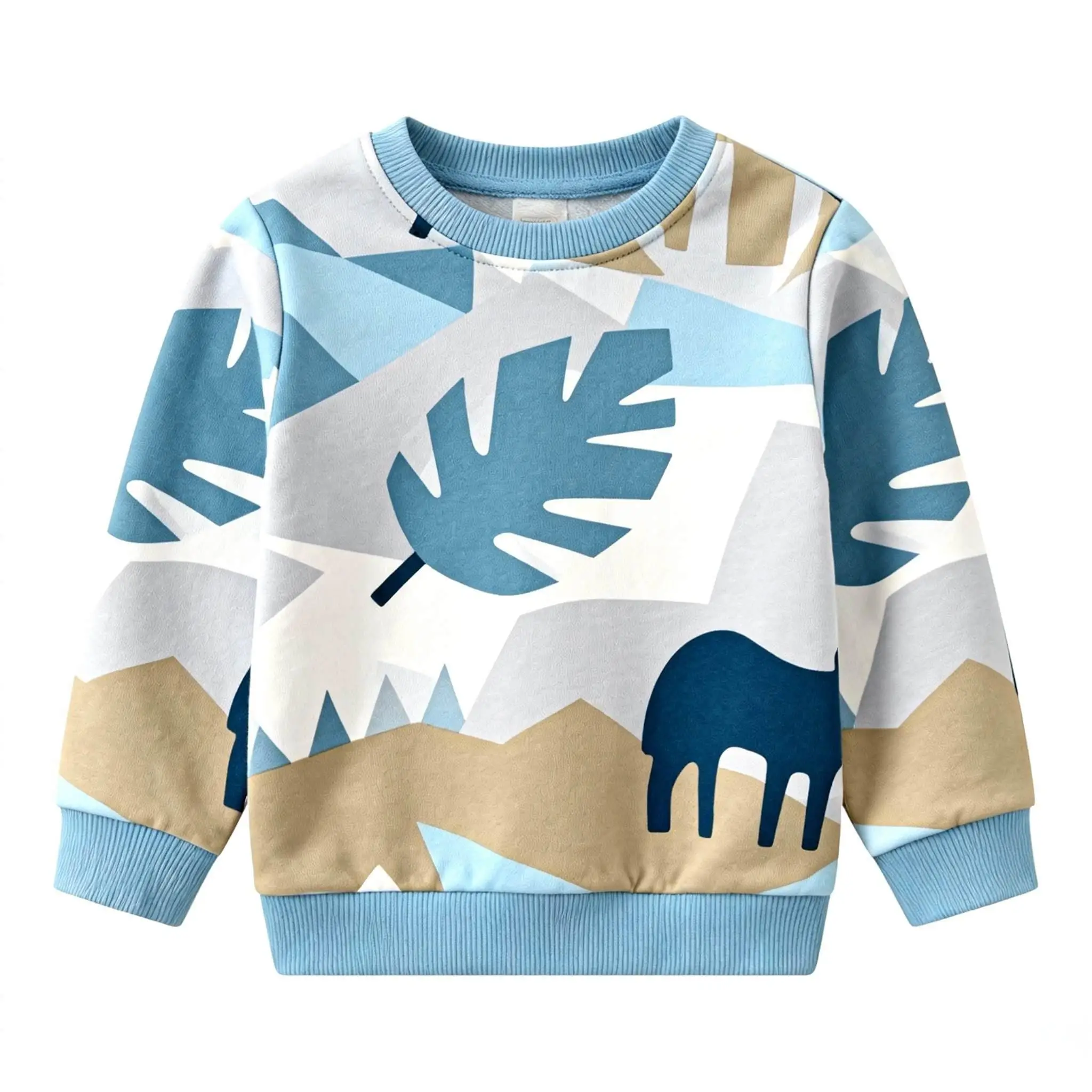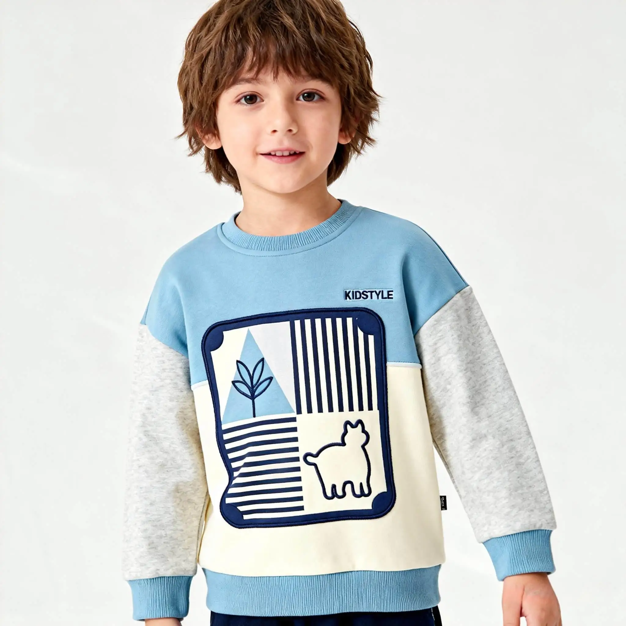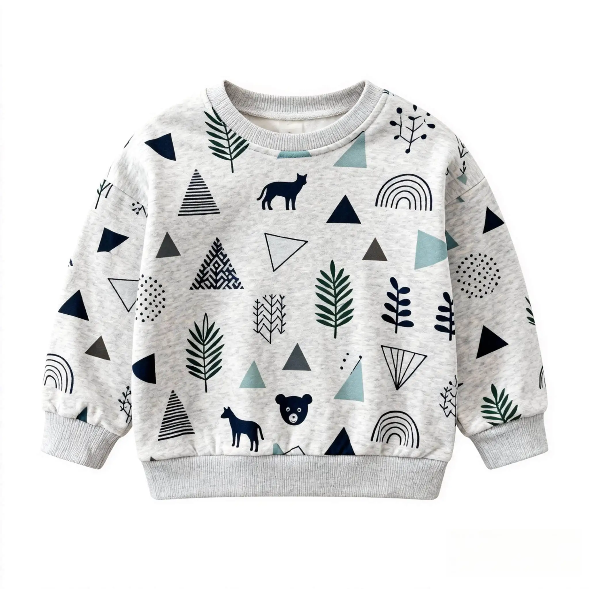 OEM ODM Custom Cartoon Pattern Kid's Sweatshirt Loose 100% Pure Cotton Blank Sports Pullover Children's Crew Neck Pullover